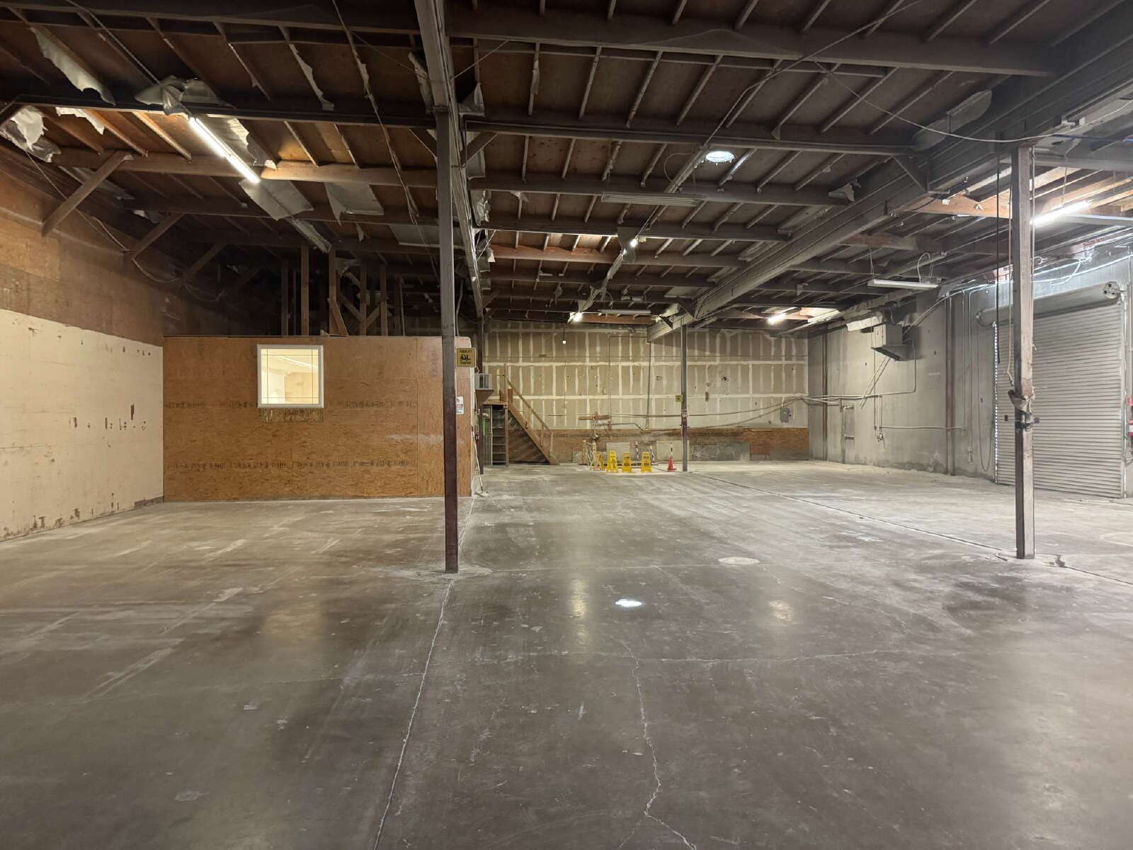About 8000 ft.² of industrial Warehouse Space with two rollup access doors and 40 foot tall ceilings. Heavy duty electrical and Access to a truck loading dock make.